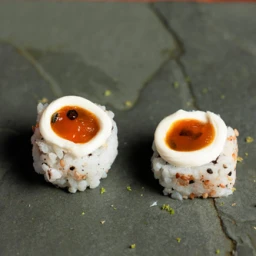 2 unidades de joy (bolinha de arroz envolto de salmão e creamcheese, com geleia em cima)