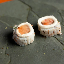 2 unidades de joy (bolinha de arroz envolto de salmão e tartar de salmão com gergilim em cima)
