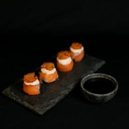 2 unidades de joy (bolinha de arroz envolto de salmão e creamcheese, com camarão em cima)