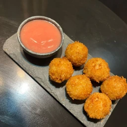 Bomba de salmão defumado com cream cheese empanado na farinha panko.