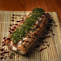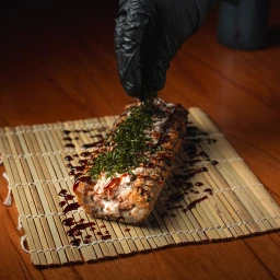 2 unidades de joy (bolinha de arroz envolto de salmão e creamcheese, com geleia em cima)