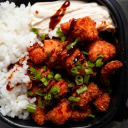 Arroz japones, cream cheese, camarão crocante, molho teriaky e cebolinha