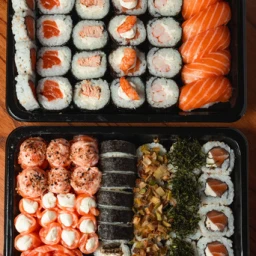 8 sashimis salmão 8 sashimis macaricados 5 ice 5 ice toast com teriaky 5 maki salmão filadelfia 5 uramaki salmao filadelfia 4 caminha de camarao 4 niguiri salmão 4 niguiri macaricado 4 joy tartar 4 joy camarão 6 uramakis geleias 4 uramaki (alho+couve) 30