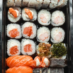 8 sashimis salmão 8 sashimis macaricados 5 ice 5 ice toast com teriaky 5 maki salmão filadelfia 5 uramaki salmao filadelfia 4 caminha de camarao 4 niguiri salmão 4 niguiri macaricado 4 joy tartar 4 joy camarão 6 uramakis geleias 4 uramaki (alho+couve) 30