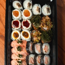 5 uramaki especial com crisp de couve + 5 hossomaki skin + 10 hotroll de salmão com cream cheese e teriaky.